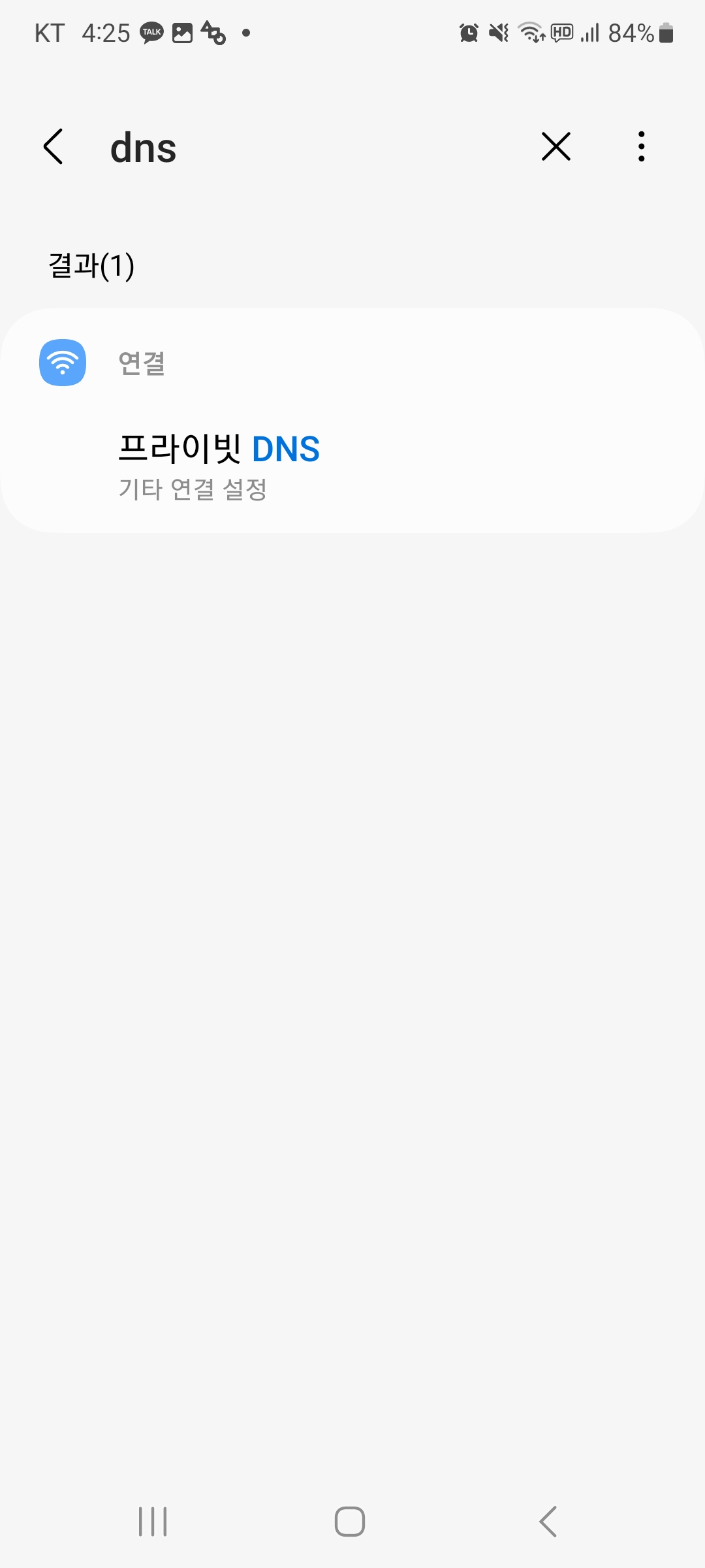 먼저 핸드폰의 설정으로 들어가 DNS를 검색한다