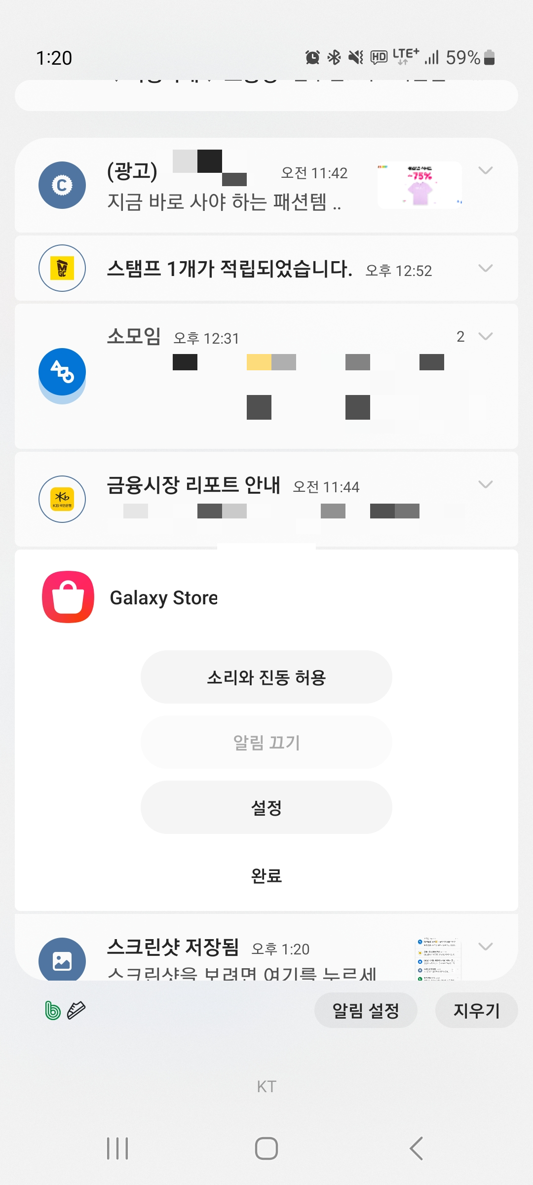그래서 알람을 끄려고보니 갤럭시 스토어는 기본 프로그램이라 그런지 나도 모르는 사이에 동의를 한 것인지 모르겠지만 알람을 내가 지울 수가 없었습니다. 그래서 제가 설정한 방법으로 다른 분들도 알람을 끌 수 있도록 처음부터 설명드리겠습니다.