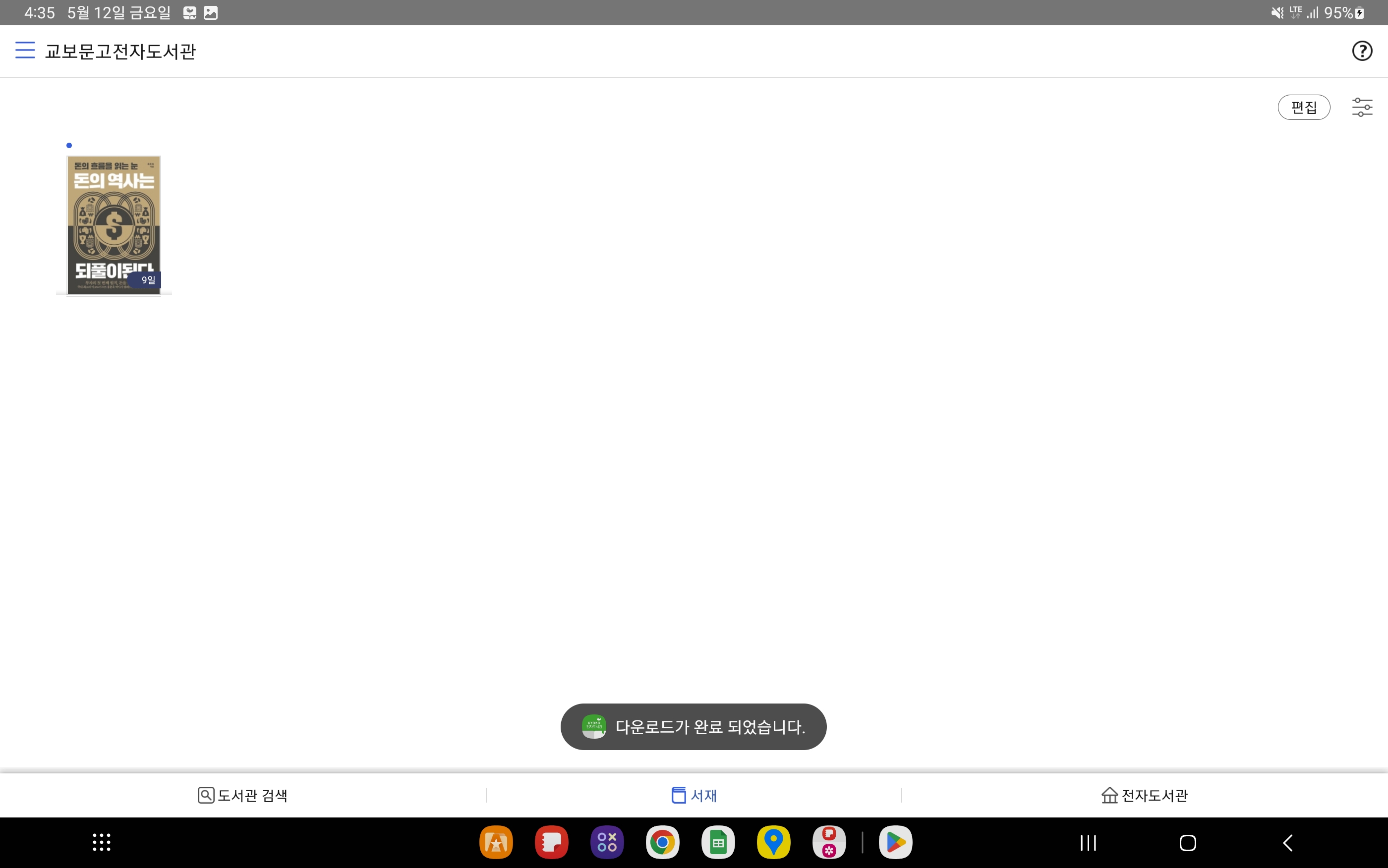 다운이 완료되고 나면 나의 서제에 책이 보입니다. 반납기간이 지나고 나면 책은 자동 반납이 되며 서제에서 사라지고 다시 읽고 싶거나 다 읽지 못했는데 반납이 되었다면 대출 목록으로 가서 기존에 대출한 책들을 다시 대출해서 읽으시면 됩니다.