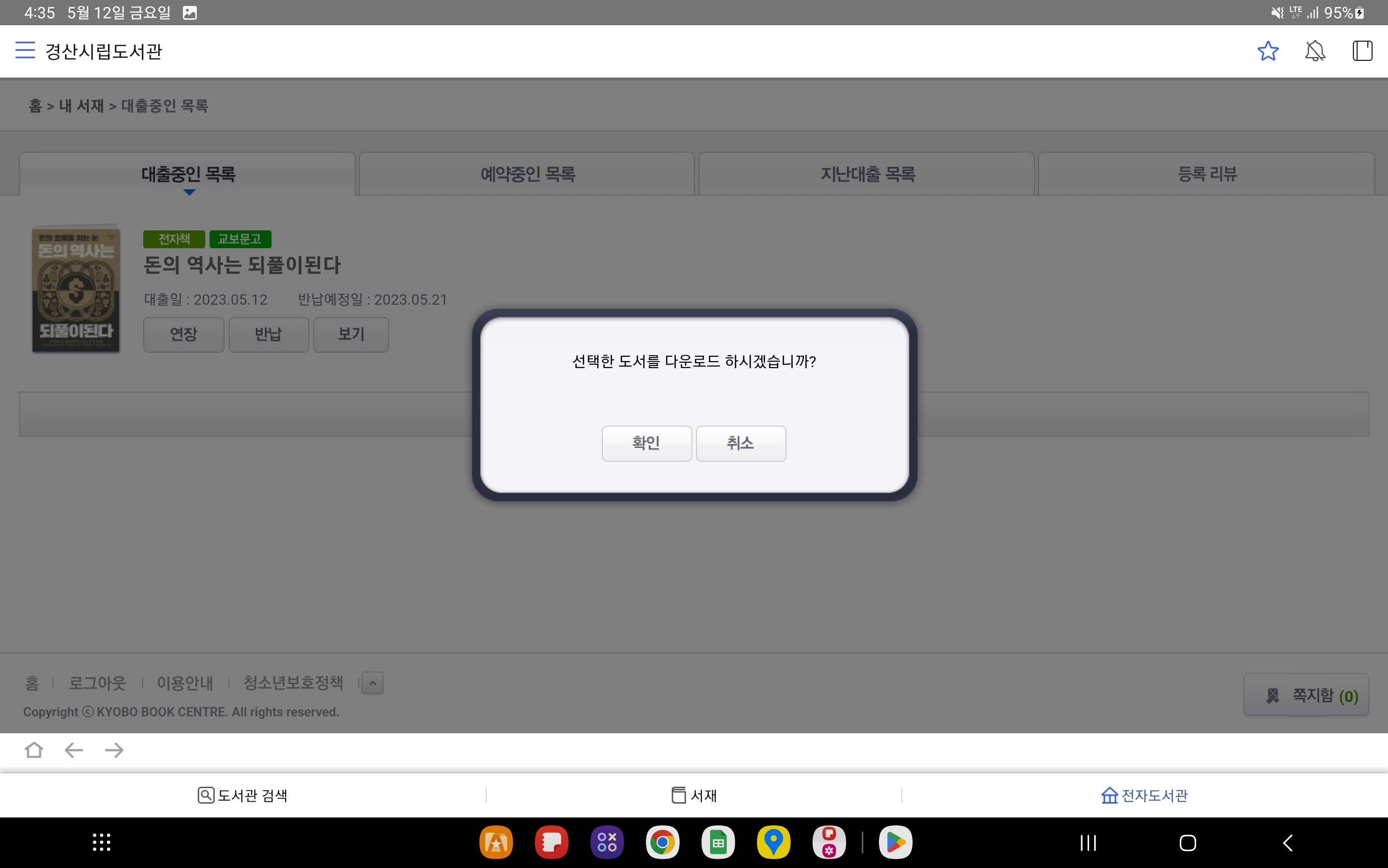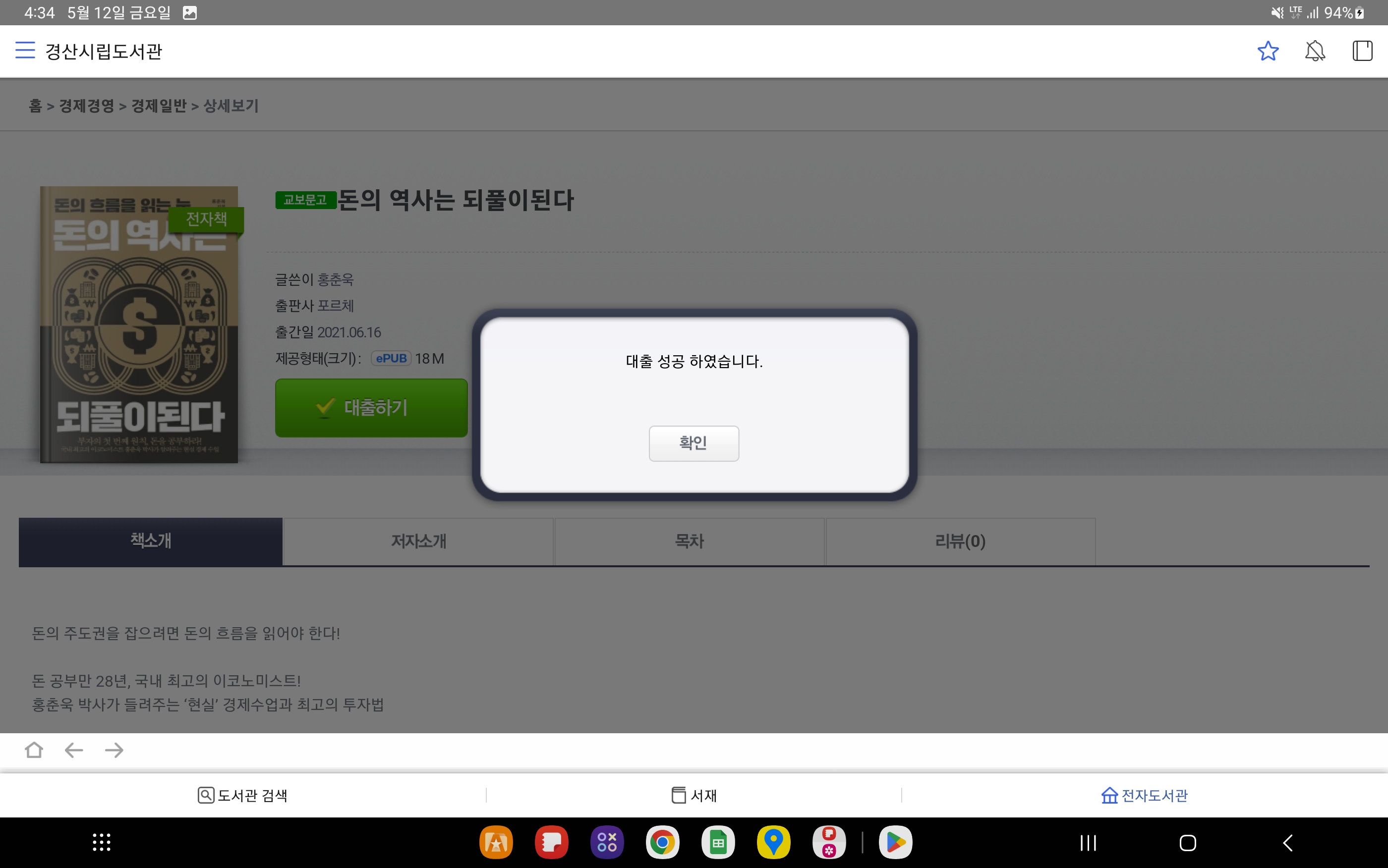 대출에 성공하였습니다. 이제 이 책은 제가 무료로 읽을 수 있는 책인 겁니다.
