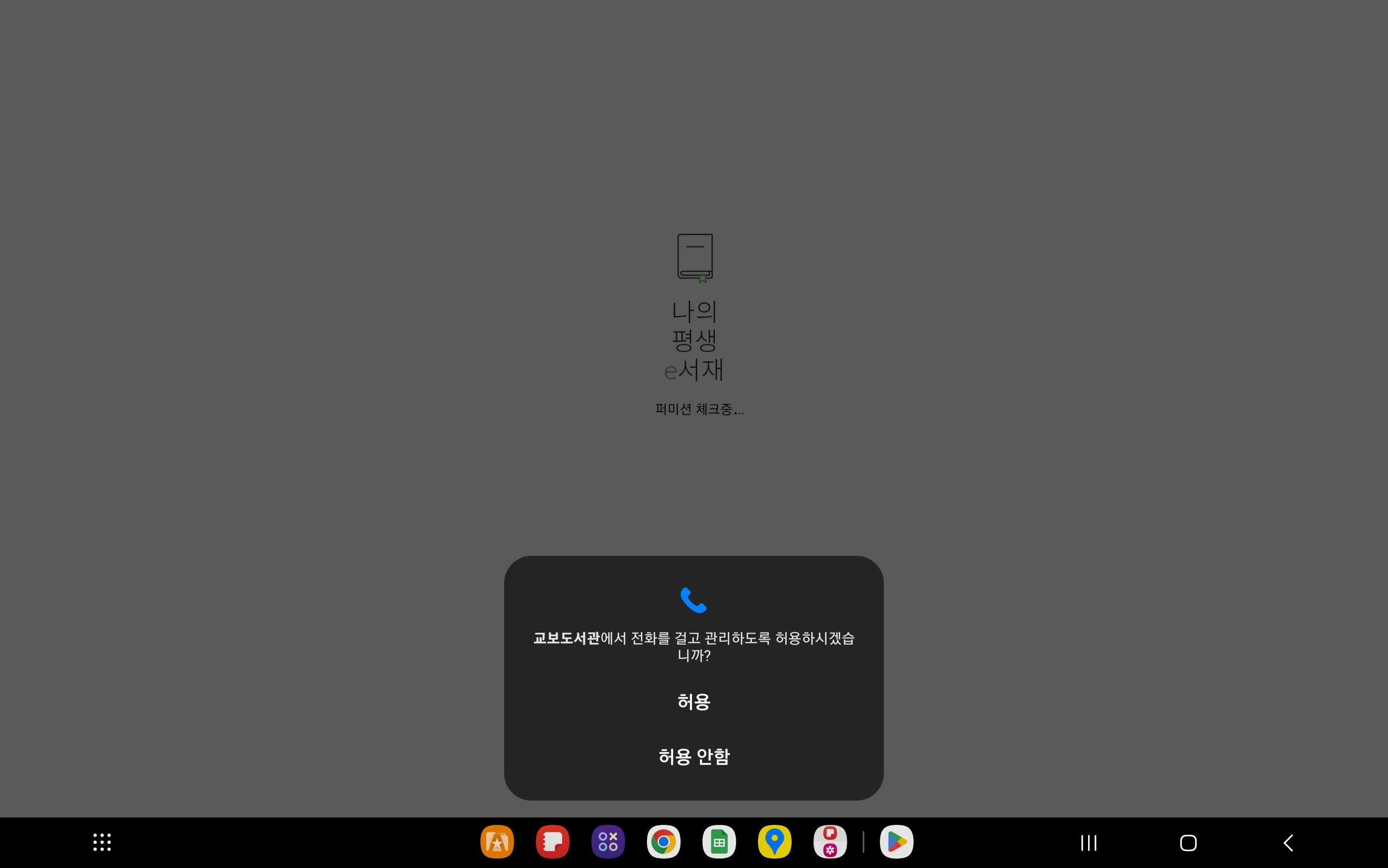 어플이 원활하게 돌아가기 위해서는 전화랑 저장공간에 대한 권한을 획득해야 합니다. 저장공간은 전자책을 다운로드하여서 볼 수 있어서 사용하는데 전화는 왜 필요한지 모르겠으나 동의를 해줘서 어플이 원활하게 돌아가도록 해줍니다.