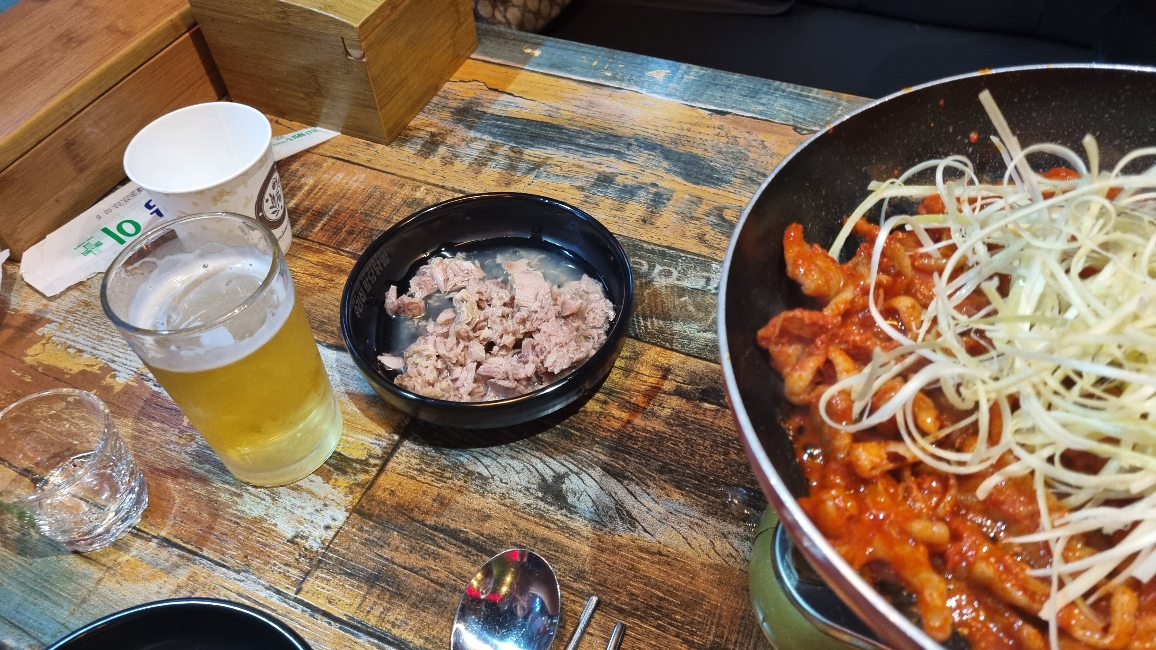 일단 참치캔, 매운 닭발, 안 매운 오징어 이렇게 3가지를 시키고 먹었는데 제일 맛있는 것은!! 참치캔이 제일 맛있어요