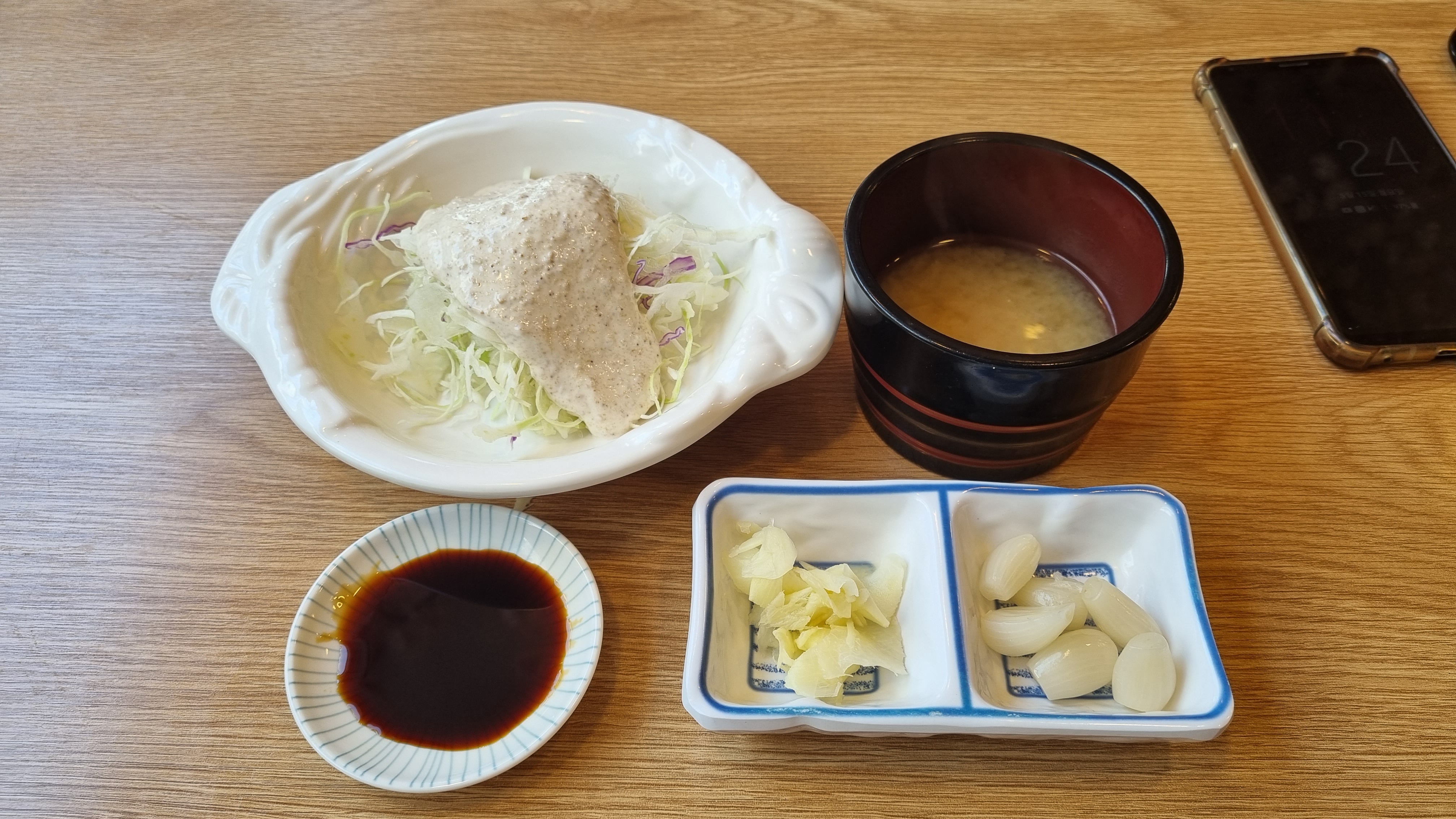 앉자마자 샐러드와 미소된장국을 바로 준비해주셨습니다. 빠른 서빙 너무 좋아요 음식은 원래 주문하고 난 후에 제일 배가 고픈데 앉자마자 뭔가 먹을 것을 주는 것이 너무 좋았습니다.