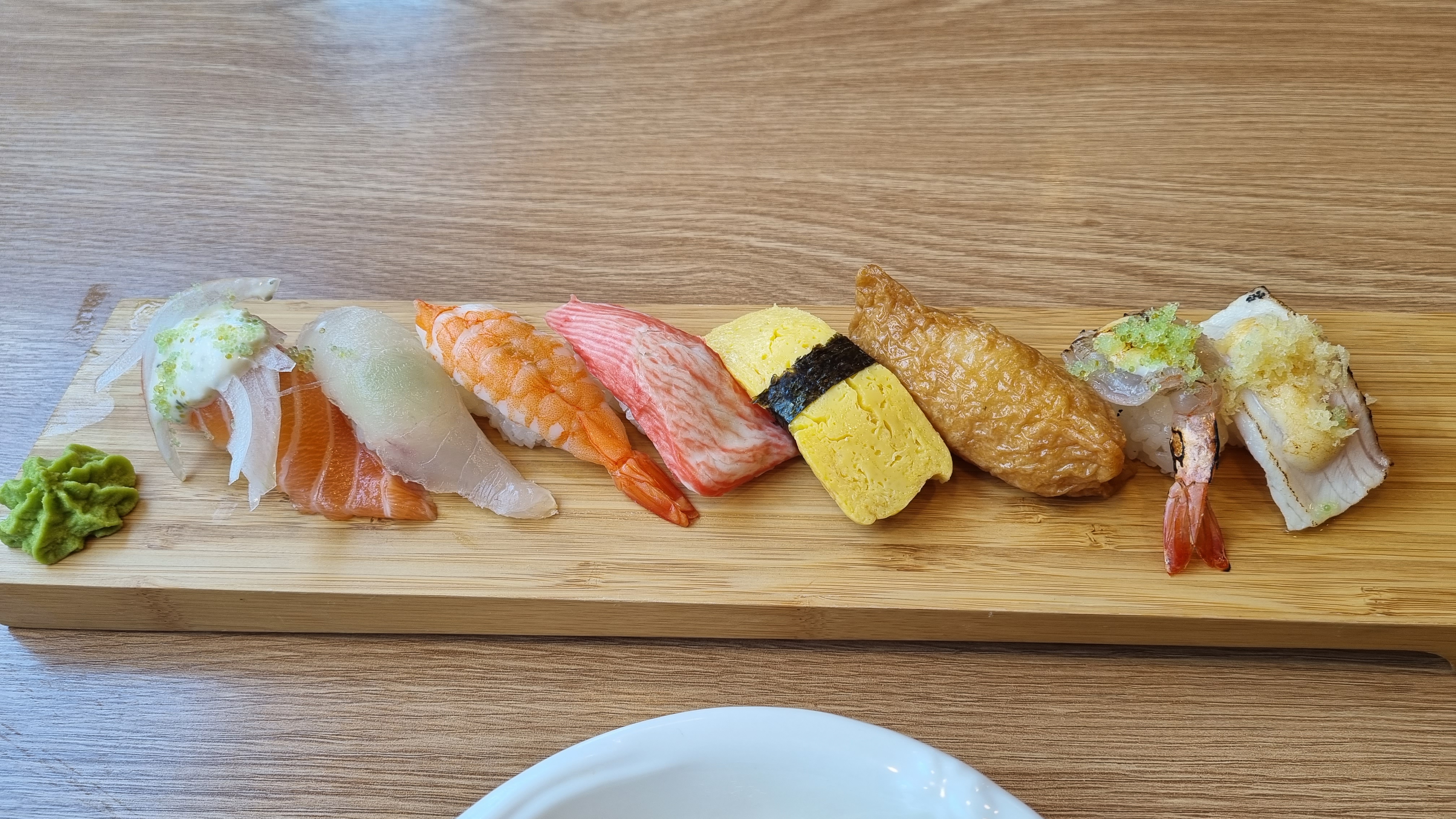 초밥의 특성이랄까? 손질된 재료들이 있다면 밥을 쥐어 재료를 올려 나오면 되기에 미소된장국을 호로록 다 마셔 갈떄쯤 초밥이 나왔습니다. 초밥을 먹고 있는데 김마끼도 하나 추가로 주시더라구요 서비스였던 거 같습니다.
