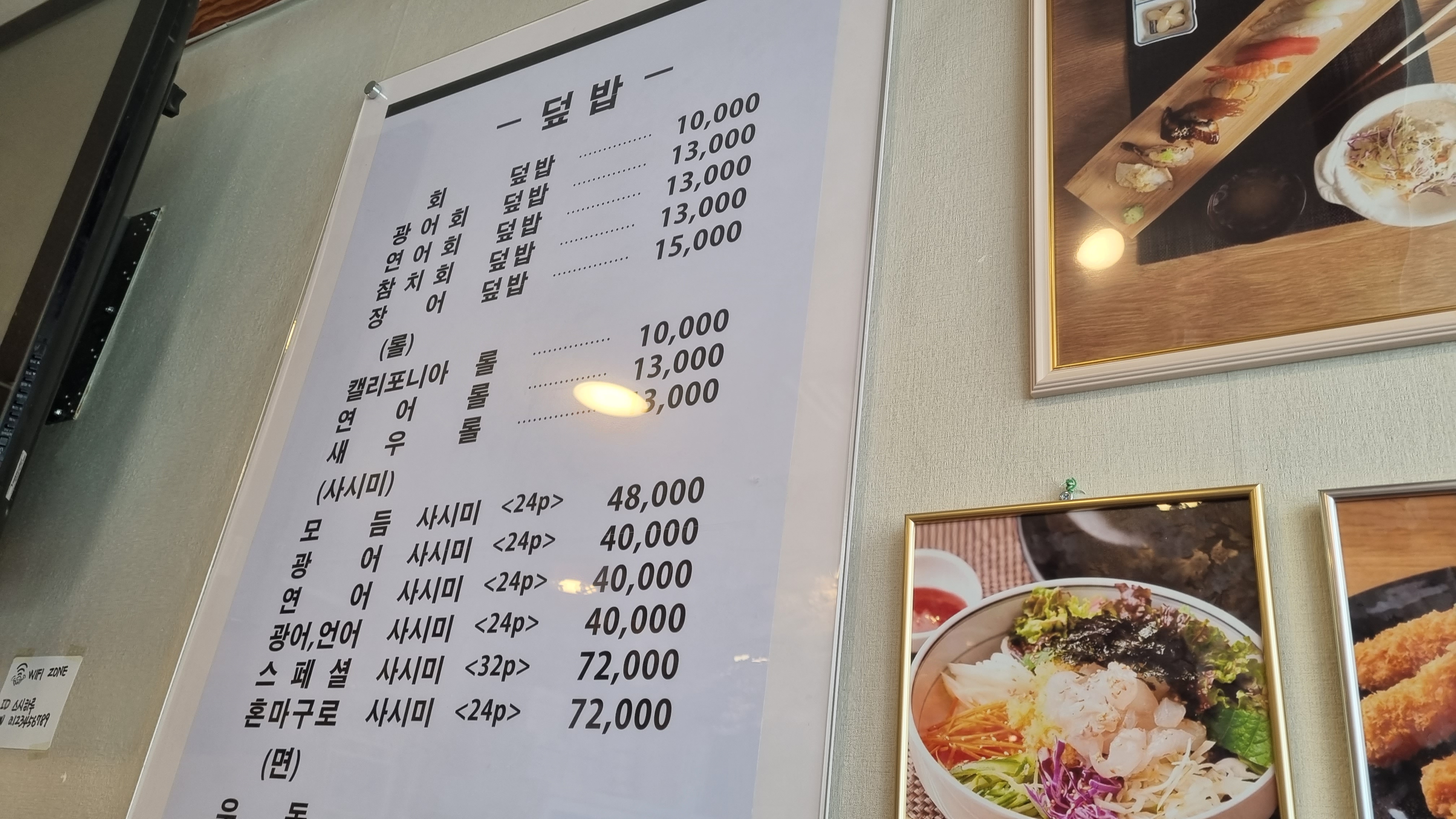 메뉴판입니다. 밖에 문에도 메뉴가격이 적혀 있고 안의 가격도 따로 준비가 되어있는데 가격은 평범했습니다. 저렴하다고 생각이 들지는 않았다고 해야 하나?