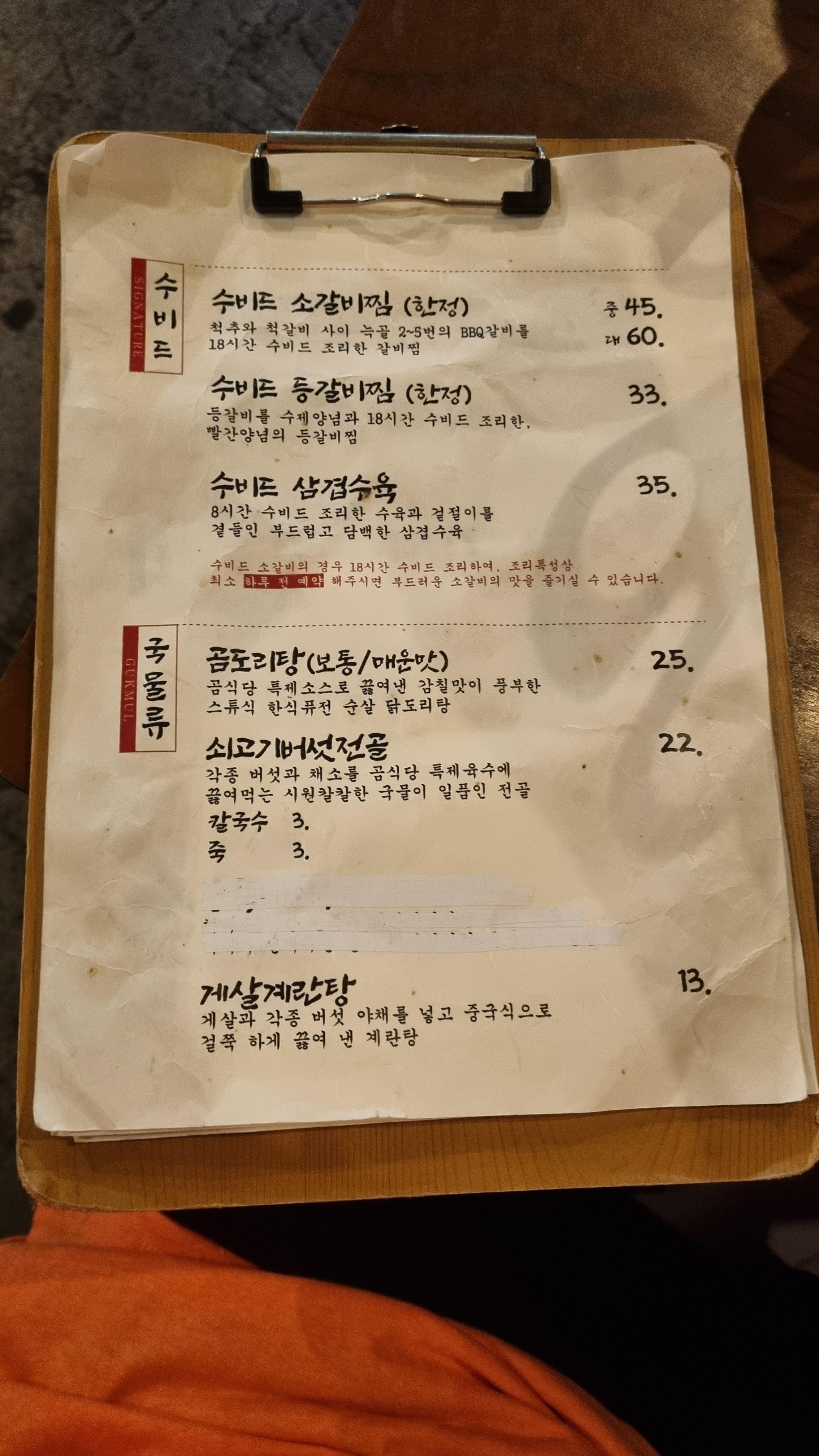 다른메뉴들은 벽에 붙여 두지 않으셨는데 삼겹 수육과 버섯 전골 두가지만 벽에 메뉴를 붙여 두셨더라구요